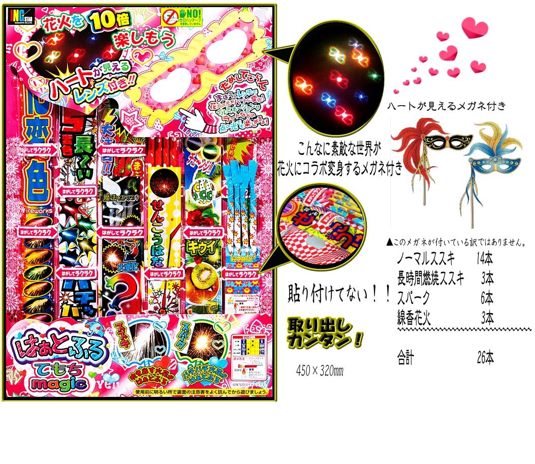 ハートが花火にコラボして見えるメガネ風レンズ付き
