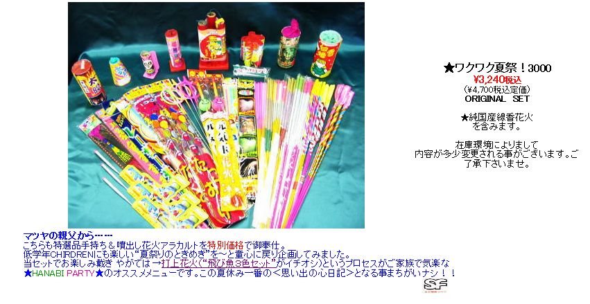 現在は中国製噴出花火6個&国産線香花火6本を含む総計64本編集とさせて頂いております。