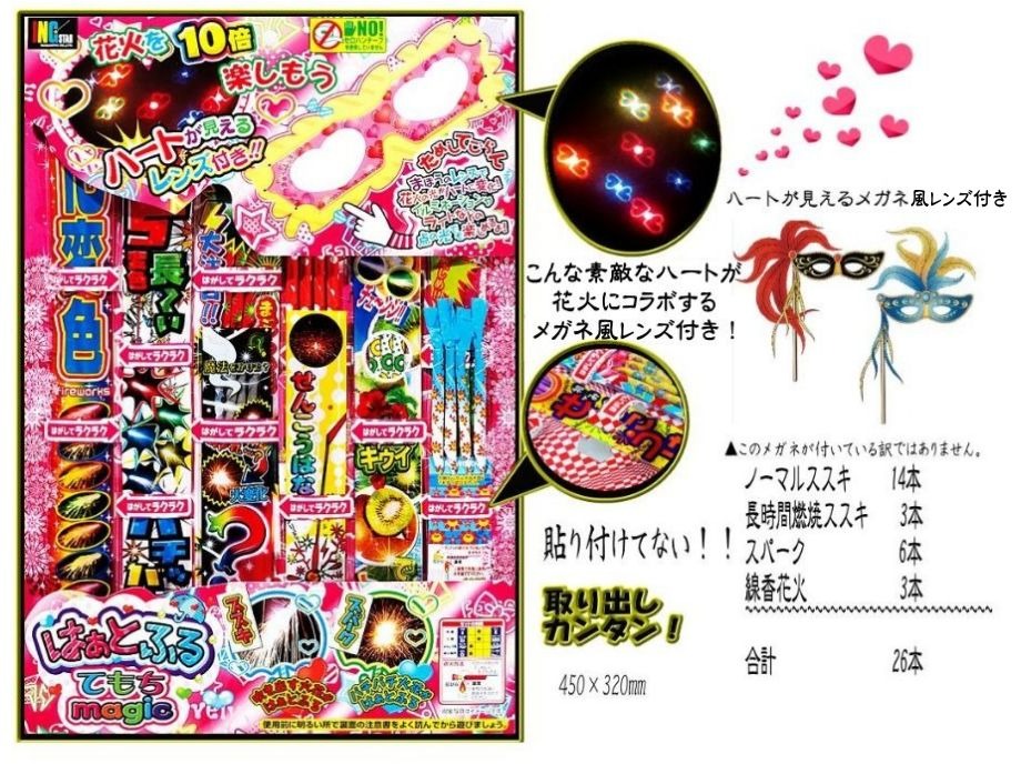 ハートが花火にコラボして見えるメガネ風レンズ付き