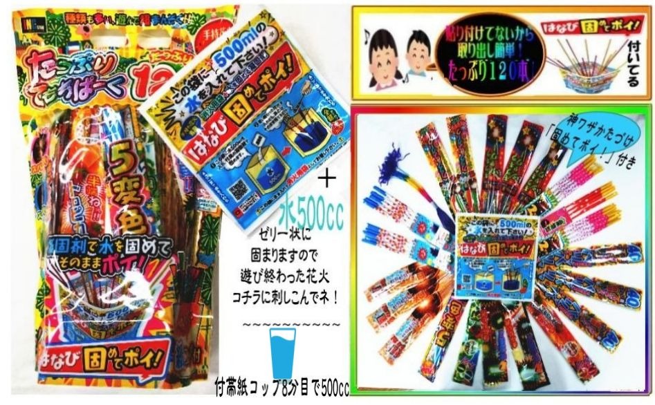 手持ち花火のみたっぷり120本も入った袋パックです。