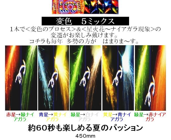 1本で色変化&燃焼変化(ナイアガラ→星火花)
